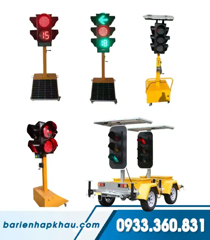 2. Đèn giao thông Xanh, đỏ, vằng, năng lượng mặt trời di động (có bánh xe)