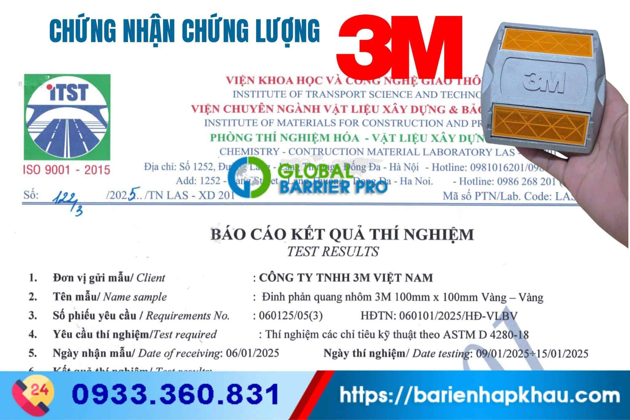 Đinh phản quang nhôm 3m đạt kết quả test của